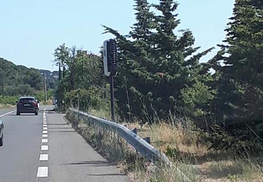 Il contrôle les deux sens de circulation et flashe par l'arrière en direction de Gruissan et par l'avant en direction de Narbonne.